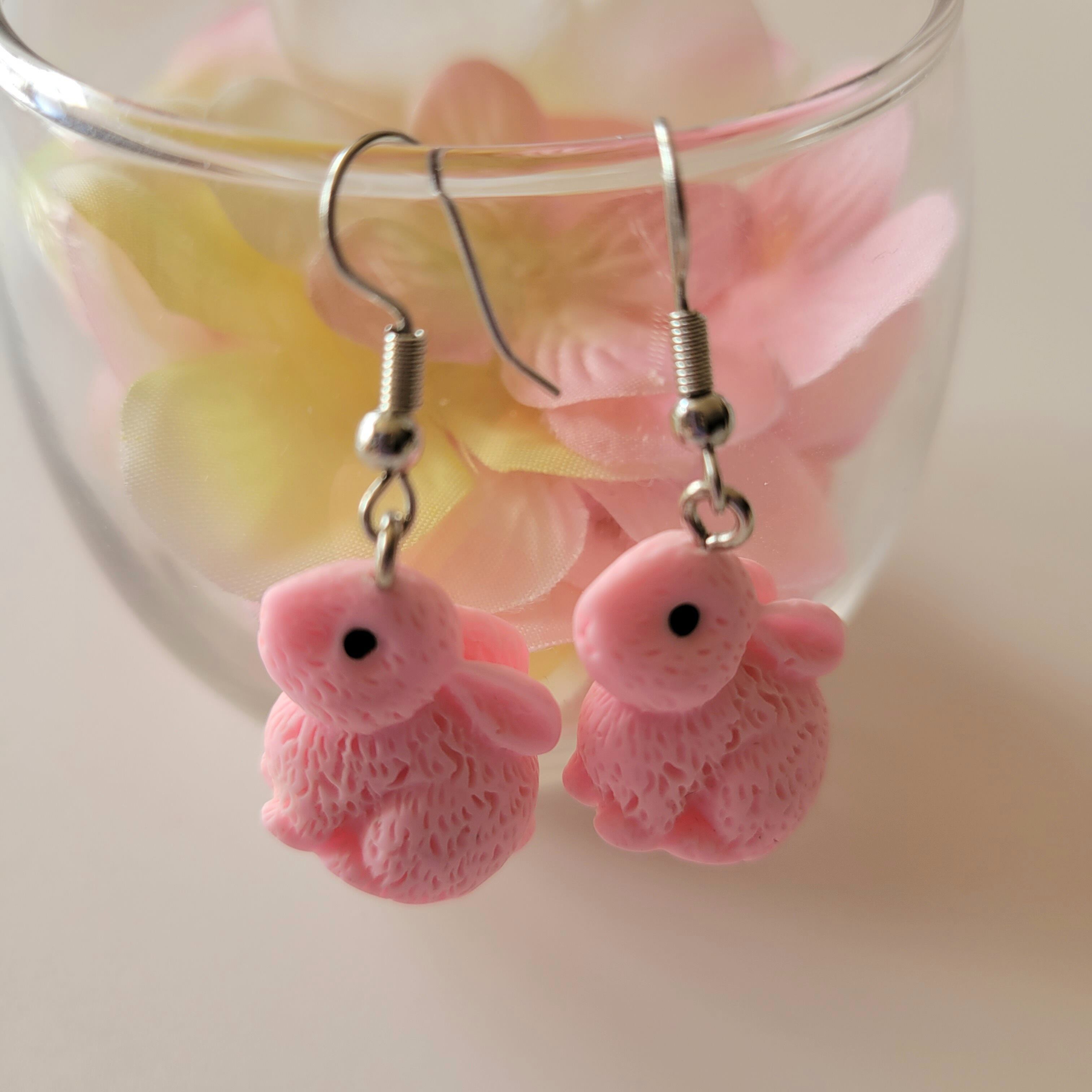 可愛いうさぎが揺れるピアス♪ 軽いので耳への負担も少ないです‼️ イヤリングへの変更も無料でさせて頂きます✨️ ◆サイズ:4.2㎝×2.3㎝ ◆素材:ポリレジン ◆カラー:ピンク ※商品カラーはできる限り実物に近い色に撮影しておりますが、多少の誤差が生じる場合がございます。 色違いも販売しております✨️